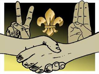 Además de hacer estas señas con la mano derecha, si estás junto al otro scout, se estrecha la mano izquierda al mismo tiempo y en algunos grupos entrelazando los meñiques a la vez.